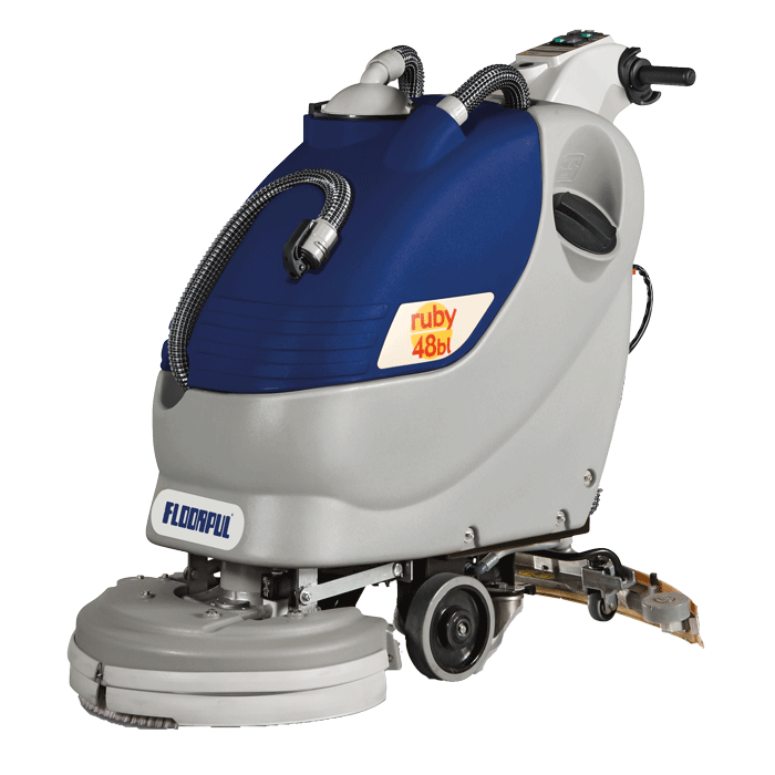 Podlahový čisticí stroj RUBY 48BL je kvalitní a spolehlivý podlahový mycí stroj s pracovním záběrem 485 mm. Stroj je dodáván jako jednokartáčový (kartáč 19") vybavený semi pojezdem, tj. pojezd za pomocí rotace kartáče.