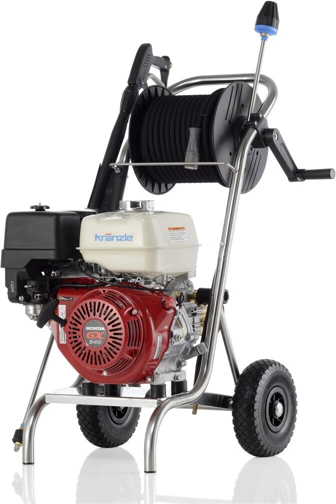 Profesionální benzínový vysokotlaký studenovodní čistič Kränzle Profi-Jet B 20/200 na podvozku z ušlechtilé ocele, s navíjecím hadicovým bubnem se sklopnou klikou a s motorem HONDA GX390 LX je kombinací velkého množství technických inovací, které poskytují ten nejvyšší výkon, spolehlivost, bezpečnost a provozní pohodlí při každodenním používání. Technologie Kränzle Vám pomůže šetřit čas, vodu a energii - při maximální účinnosti čištění! Tento vysokotlaký benzínový čistič je zejména vhodný pro použití v místech s nedostupnou elektrickou energií. Jelikož je stroj schopný nasávat i z externích zdrojů je nezávislý nejen na elektrické energii, ale také na vodovodním řádu.