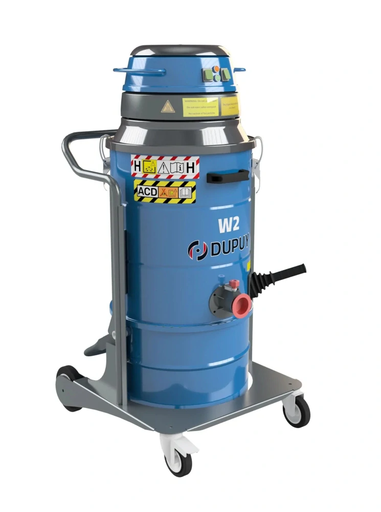Průmyslový vysavač W2 ACD s celokovovou konstrukcí je určený pro práce v průmyslu, kovovýrobě, lakovnách, zemědělských skladech osiv, při čištění sil, řemeslnictví, úklidech průmyslových hal, pekárnách. Je to všestranně použitelný vysavač s optimálním výkonem a velkou plochou textilního hvězdicového filtru. Je dodáván standardně s filtrací polyesterovým filtrem kategorie „M“ a následně absolutním filtrem H14 s úrovní filtrace 99 995%. Na přání mohou být dodány speciální filtry pro různá použití s filtrací kategorie „M“. S vysavačem lze vysávat jak suché tak i mírně navlhlé nečistoty, neublíží mu ani jemný prach. Není určen pro vysávání tekutin. Filtr lze manuálně oklepávat pákou umístěnou ve střední části pláště vysavače. Lze použít příslušenství průměru 40 mm a menší. Na vysavači mohou být i držáky pro uložení sací hadice a příslušenství, takže se nic neztratí. Vysavač se používá jako bezsáčkový. Je to ideální volba pro práce, kde potřebujete dlouho pracovat bez nutnosti vysypávání obsahu odpadní nádoby či neustálého čištění filtru. Lze jej provozovat pouze mimo zónu ATEX, ale může vysávat výbušné prachy.