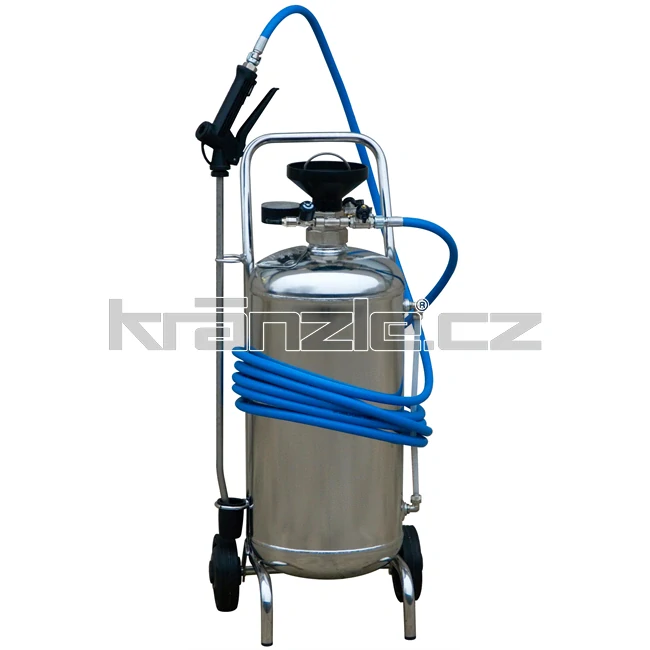 Profesionální pěnovací a postřikovací tlaková nádoba na podvozku, vyrobená z nerezové oceli, určená k aplikaci čistících prostředků, desinfekce, lubrikačních přípravků a tekutin obecně. Díky mísícímu systému je možné nádobu použít jak pro vytváření husté pěny, tak pro postřik. Objem nádoby: 24 l.